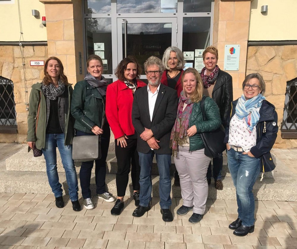 Ihr Fazit: „Absolut beeindruckend“. Am Donnerstag besuchte MdB Beate Walter-Rosenheimer auf Einladung der Ortsgruppe von BÜNDNIS90/DIE GRÜNEN das Mehrgenerationenhaus in Wackersdorf. Seit rund drei Jahren bringt diese unter anderem aus Bundesmitteln geförderte Einrichtung Jung und Alt zusammen und ermöglicht den Bürgerinnen und Bürgern mit überzeugendem Konzept die Teilnahme am öffentlichen Leben. Neben einem offenem Treff, einem Jugendtreff und der Bücherei befinden sich unter anderem auch eine Turnhalle, ein Werkraum sowie der Probenraum des örtlichen Musikvereins in dem barrierefrei gestalteten Gebäude. Bei einer Führung mit Stephanie Staudenmayer, Leiterin des Mehrgenerationenhauses, informierte sich Walter-Rosenheimer darüber, wie Gäste und Besucher die Einrichtung für sich nutzen und wie das Zusammenspiel der Generationen untereinander funktioniert. „Vor allem die Einblicke in die Präventionsarbeit bei Heranwachsenden haben mir hier ausnehmend gut gefallen“, sagte die Abgeordnete, „und es tut gut zu sehen, dass vom Bund geförderte Objekte ihre Wirkung auf gewünschte Weise entfalten“. Walter-Rosenheimer ist Vorsitzende der Kinderkommission im Bundestag und Sprecherin für Jugendpolitik und Ausbildung der Grünen Bundestagsfraktion. Zum Foto: Auf Einladung der Ortsprecherinnen der BÜNDNIS 90/DIE GRÜNEN Ortsgruppe Wackersdorf Ulrike Pelikan-Roßmann (links) und Sonja Probst (3.v.r) besuchte MdB Beate Walter-Rosenheimer (3.v.l.) am Donnerstag das Mehrgenerationenhaus in Wackersdorf. Dem Rundgang durch die Einrichtung schlossen sich Mitglieder des Kreisverbandes, der Ortsgruppe wie auch die Bezirksvorsitzende Tina Winklmann und Landratskandidat Rudi Sommer an.