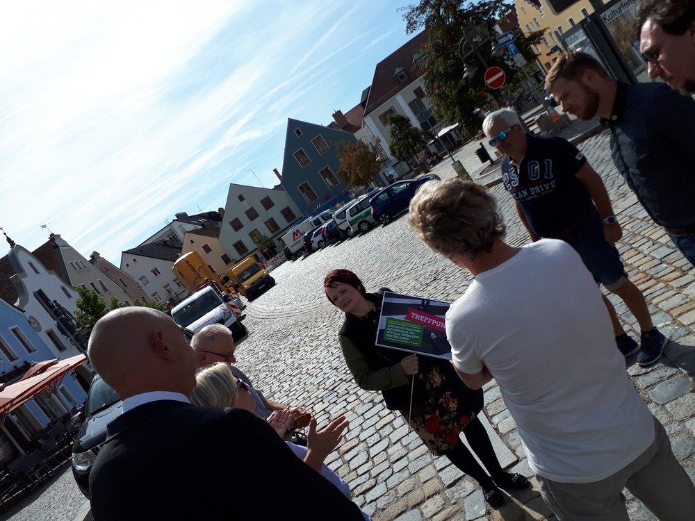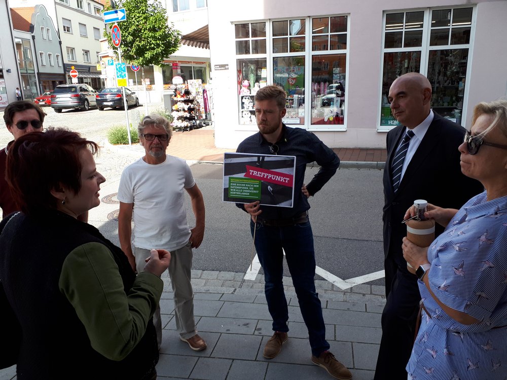 Danach gingen wir in Schwandorf bei einem Datenschutzspaziergang auf die Spurensuche nach den Datenspuren die wir alle im Alltag hinterlassen.An verschiedenen Stationen wurden uns von Verena Osgyan aufgezeigt, wo wir alle Daten teilweise unbemerkt hinterlassen. Es war ein sehr interessanter Rundgang, der uns aufgezeigt hat, wie schnell es geht zum gläsernen Bürger*in zu werden.