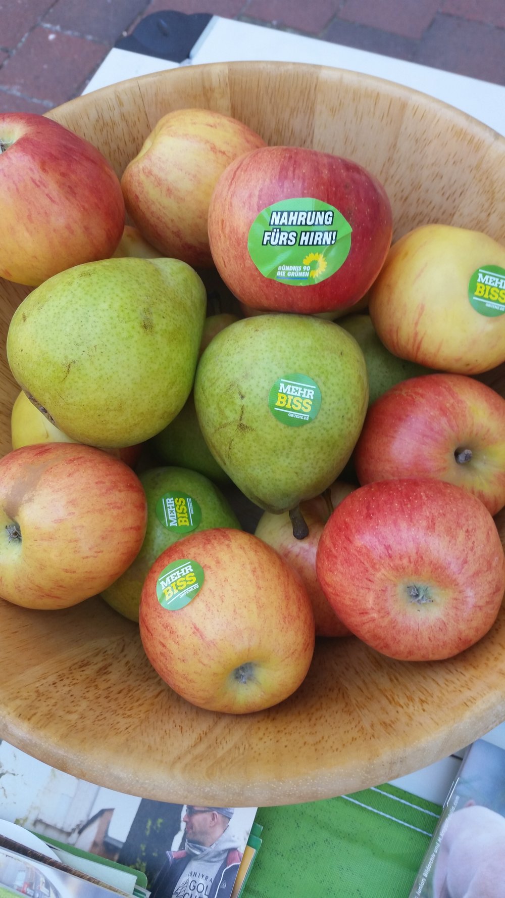 Als Giveaways bei dem sonnigen Wetter wurde unser Bio-Obst gerne genommen und rege über unser aller Essen diskutiert.
