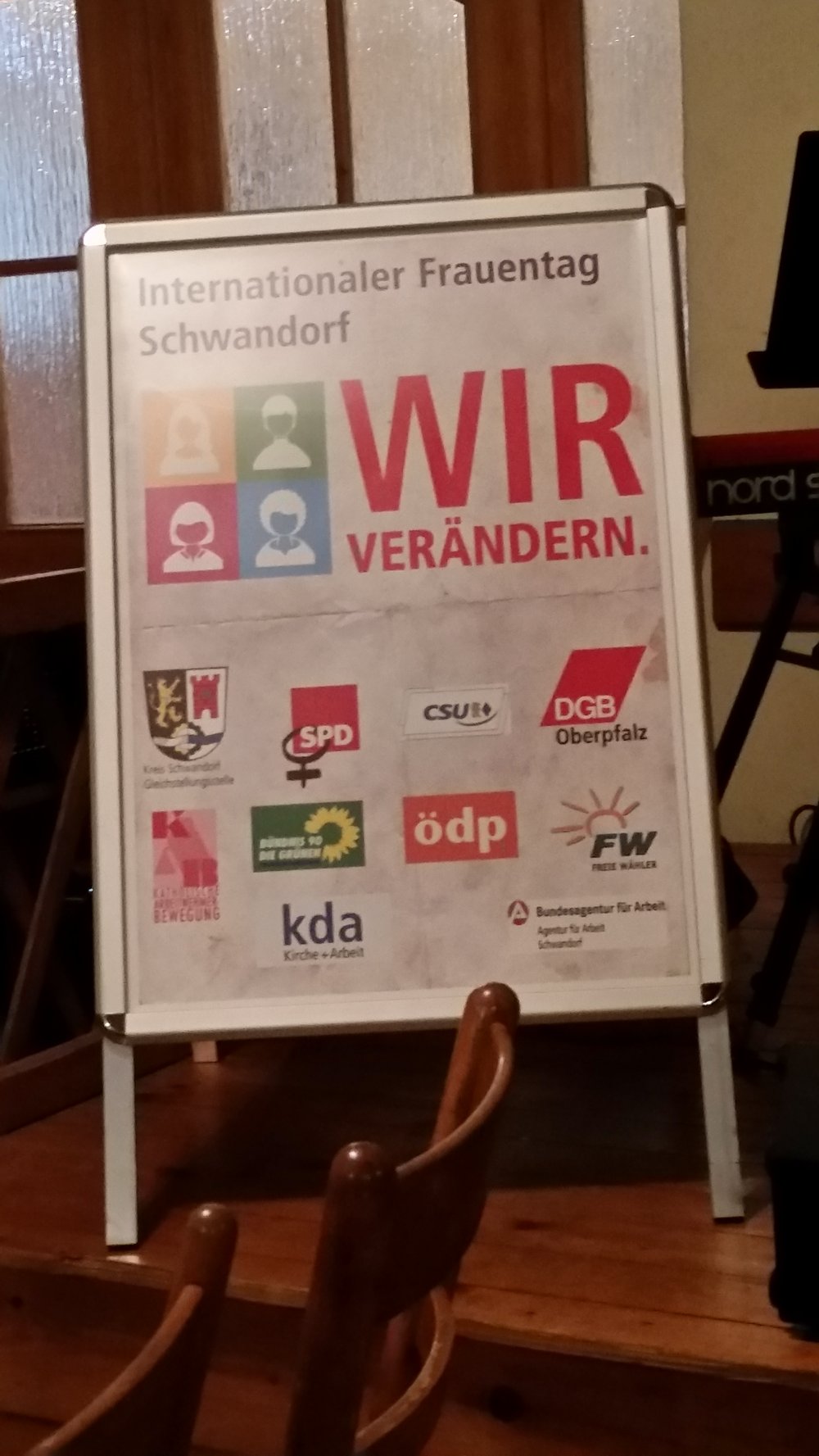 Auch in diesem Jahr konnten wir wieder als Kooperationspartner anlässlich des int. Frauentages in Fronberg mitwirken. Ein buntes Miteinander von 10 verschiedenen Partnern, organisiert von der Gleichstellungsstelle des Landkreises Schwandorf lud zum interessanten und unterhaltsamen Abend in Fronberg ein.