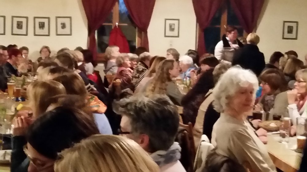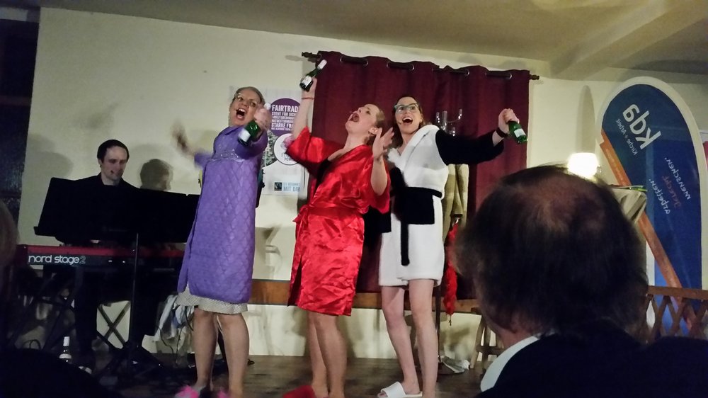 Einleitende reden der Gewerkschaft und der KDA zum Thema 100 Jahre Frauenwahlrecht, läuteten den politischen Teil des Abends ein und abgerundet wurde dieser vom Musikkabarett "Die Weibsbilder".