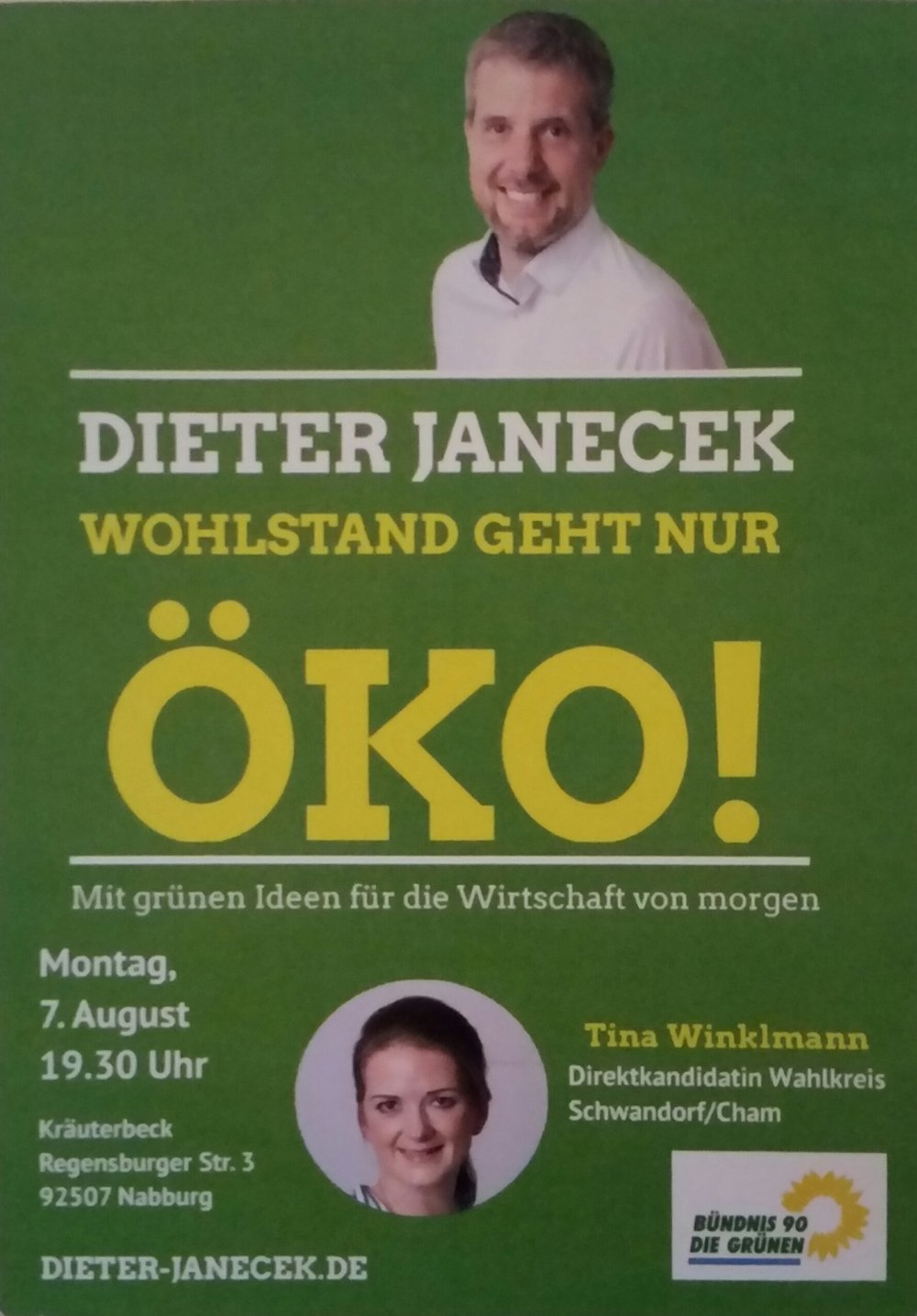 Am 07.08. fiel der offizielle Startschuss für den Wahlkampfauftakt im Wahlkreis SAD / CHA mit MdB Dieter Janecek. Um 16:00 Uhr ging es in Cham im Hotel am Regenbogen mit dem Thema "Digitalisierung" los.