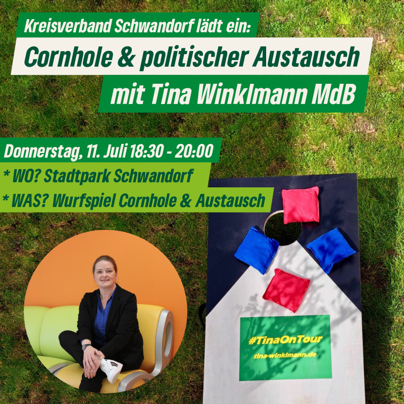 Der Kreisverband lädt ein zum zwanglosen Beisammensein beim Cornhole-Spielen und zum Austausch mit Tina Winklmann MdB und Parteikolleg*innen.