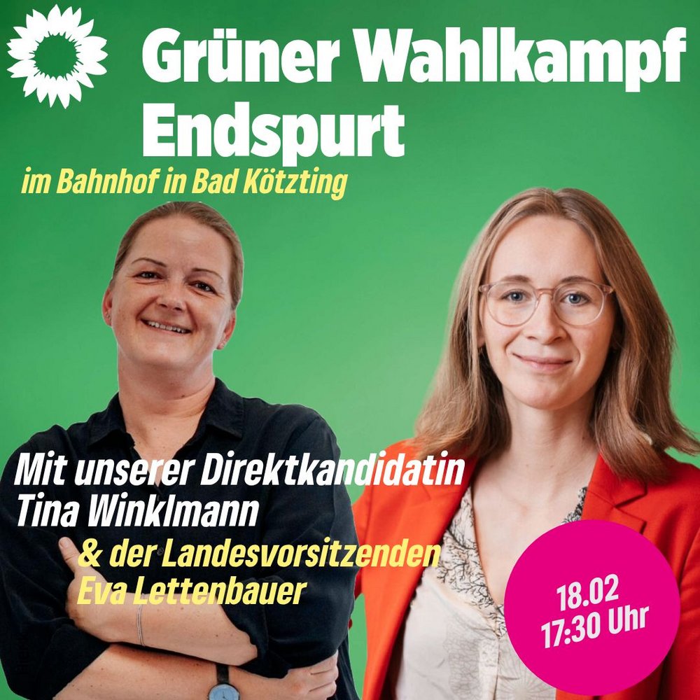 der Wahlkampf läuft auf Volldampf, wir sind hoch motiviert und laden ein, zum Höhepunkt des Wahlkampfs mit unserer Direktkandidatin Tina Winklmann MdB und unserer Landesvorsitzenden Eva Lettenbauer MdL nochmal zusammenzukommen.